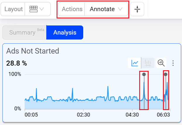 Annotations allow you to mark the anomalies in the timeseries during the data analysis within the selected time interval in Trends dashboard and Compare. Also, it enables you to add comments making it a collaboration tool.