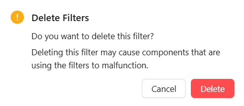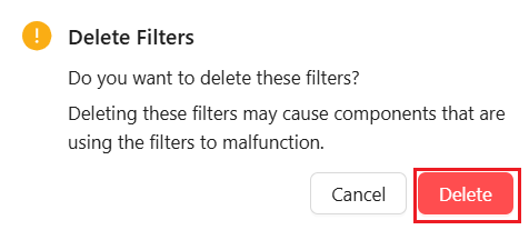 To delete multiple filters, select the checkbox next to the filter IDs of the desired filter and click the Delete button, to see the Delete Filters popup screen.