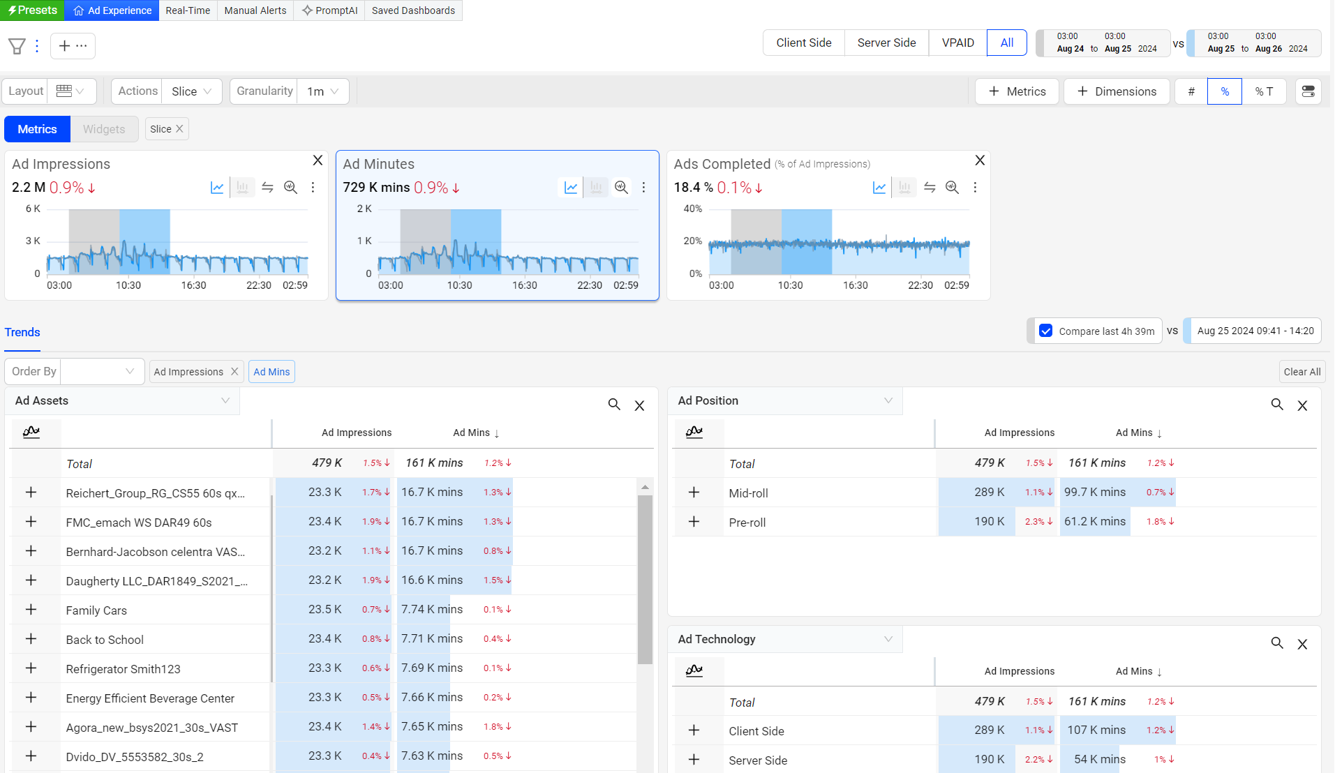 Note: When you change the time granularity in Ad Experience, the system retains this selection even when you log out and log back in, provided the granularity is valid based on the selected time range.
