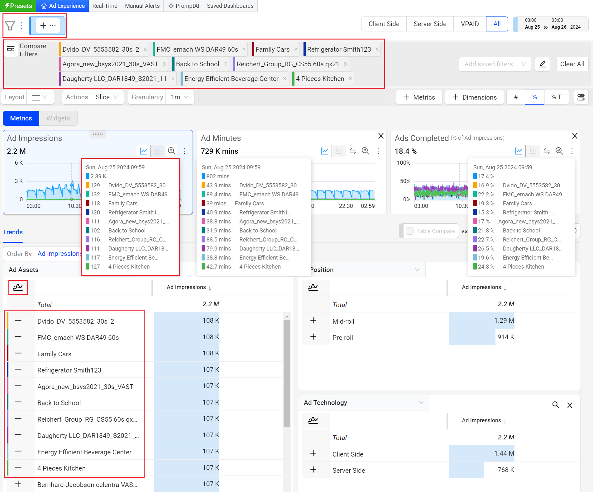 Ad Experience provides a new instant compare mode, allowing you to easily compare in advanced modes.