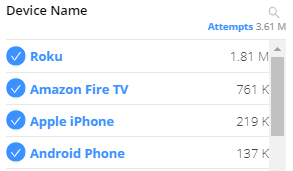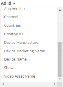 In the dimension drop-down, you can also filter ads by video dimensions, such as country, device name, and video asset name.