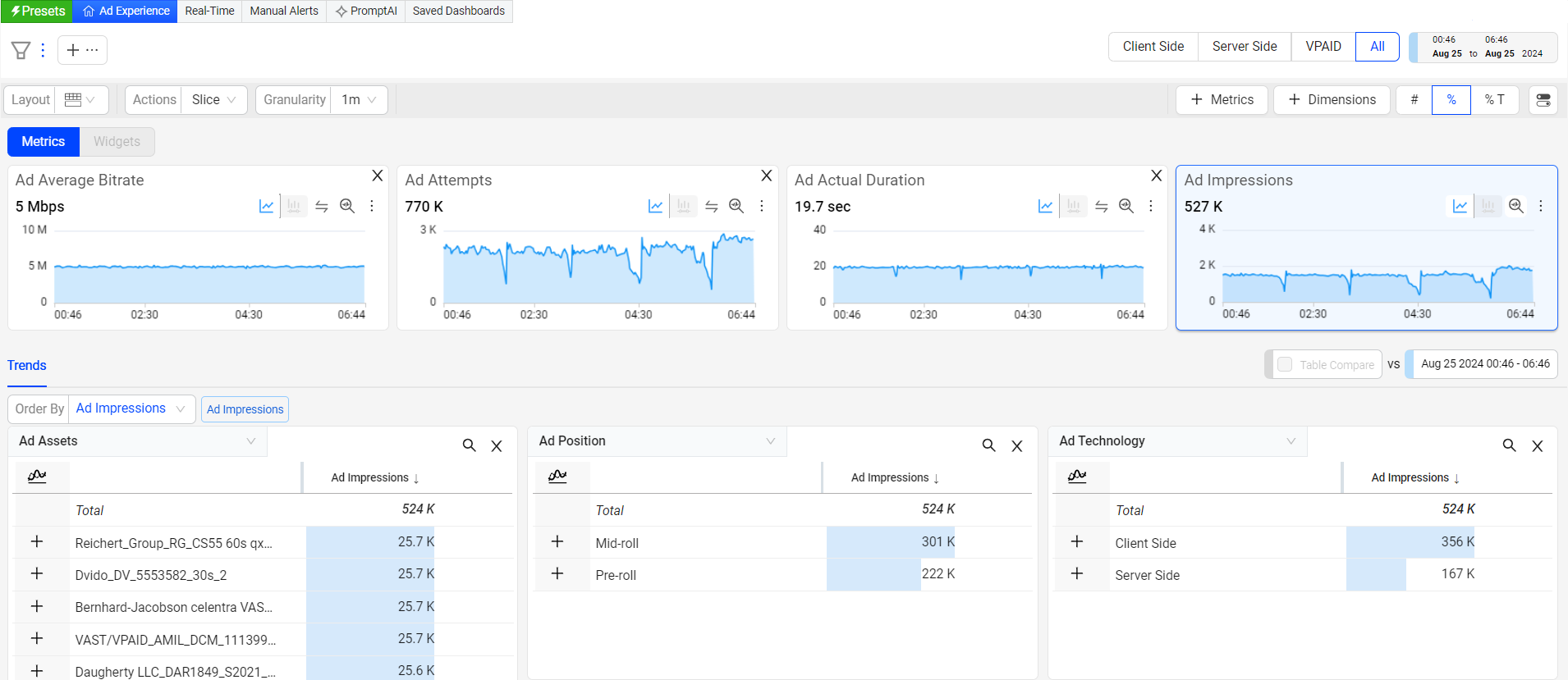 Ad Experience provides a rich set of diagnostic features and capabilities that support optimizing all aspects of your streaming performance from real-time break fixing to on-going continuous improvements.