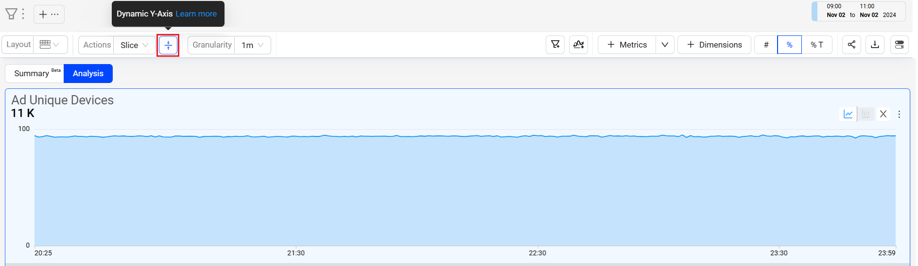 Select the desired metrics and click Dynamic Y-Axis icon.