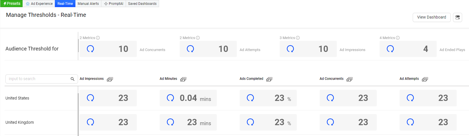 Ads Real Time Dashboard Ads Real Time Dashboard Ads Real Time Dashboard Thresholds Threshold crossing alerts Enable Auto Sort
