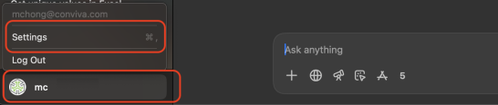 With ChatGPT started, at the bottom left corner of the UI click on your username and select Settings.