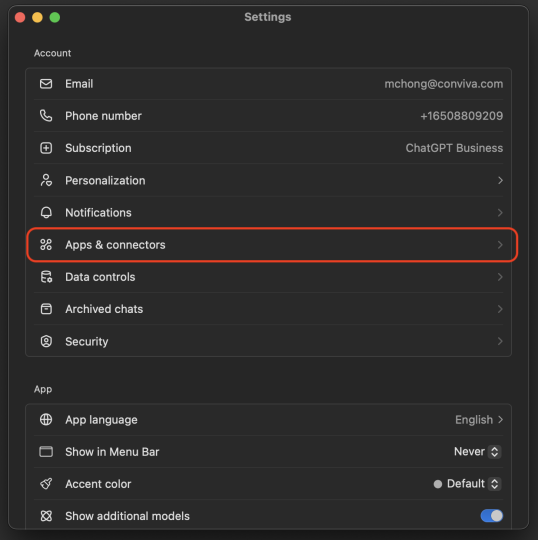 On the settings pop up, select Apps & connectors.
