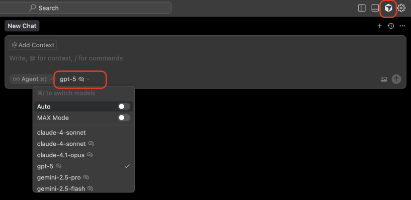 Click the “AI Pane” button to open the chat UI and choose the Cursor LLM.