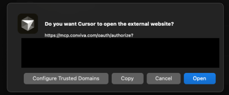 Click Open to allow your browser to open the external website for Okta authentication when prompted.