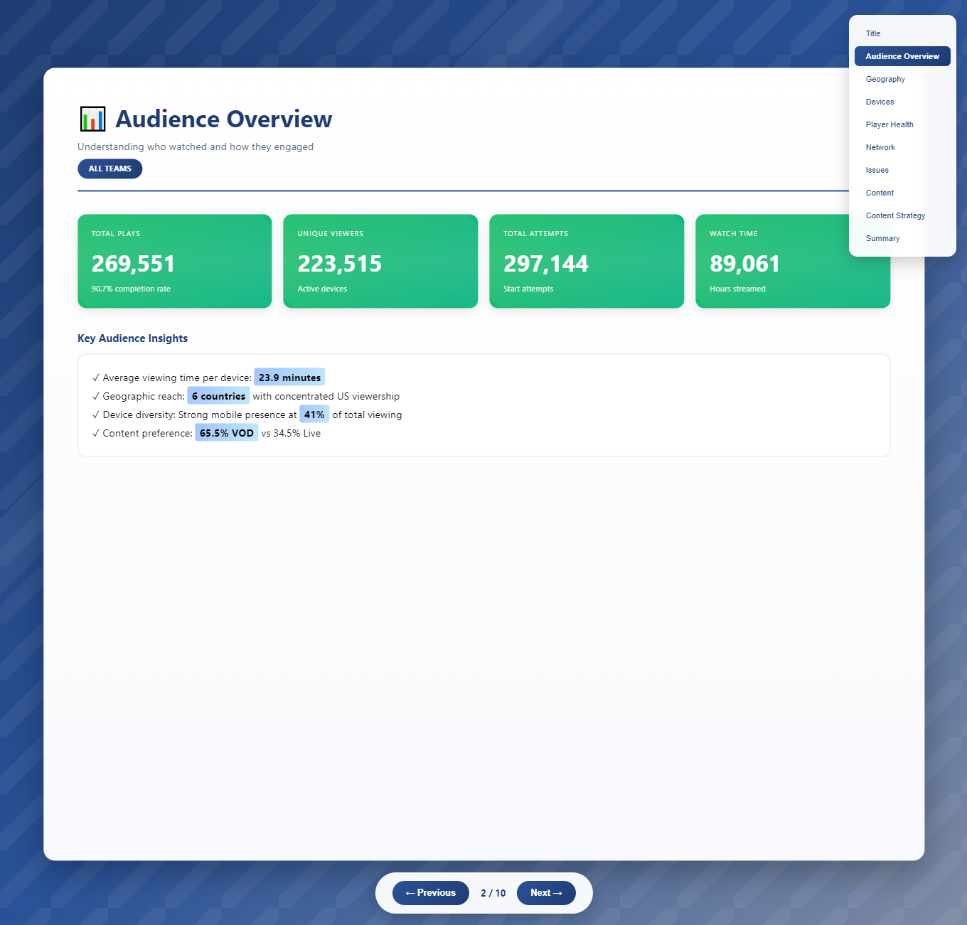| Viewer Operational Profile | Operational Performance Report |