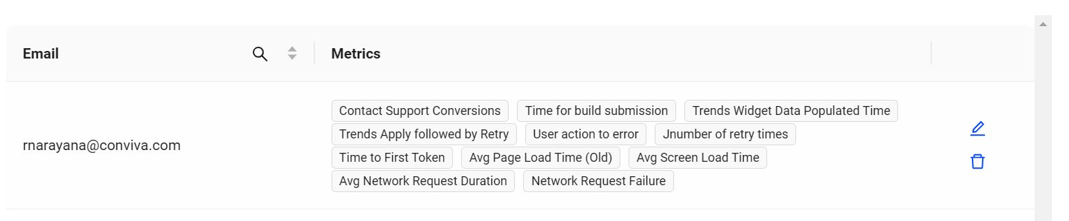 AI Alert Email Subscriptions allow Admins to subscribe and unsubscribe user email addresses to AI alert notifications, as well as set specific AI alert metric severity and notification level for each user.