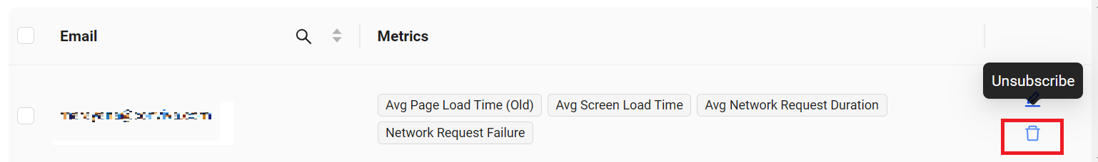 To remove users from receiving AI alert email notifications, click Unsubscribe icon.