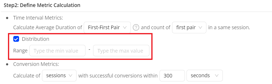 (Optional) To show the distribution of the metric in the DPI dashboard, select the Distribution check box and fill out the range.