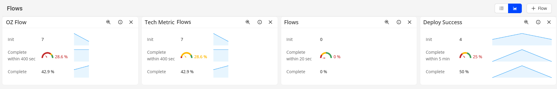 Flows represent critical steps in the user journey. By setting the start and end events of interest, Flow metrics become instantly available. These auto-generated metrics represent all the characteristics of the Flow - such as the duration, success rate, and frequency - and provide the levers to enable the Flow, and therefore the section of the user the Flow represents, to be optimized. Flows are self-defined and are not limited in their sophistication or number. Define the custom Flows based on requirement, such as conversions or error-influenced checkouts, and use the out-of-the-box dashboards to monitor KPIs like success rate, inits, duration, and errors.