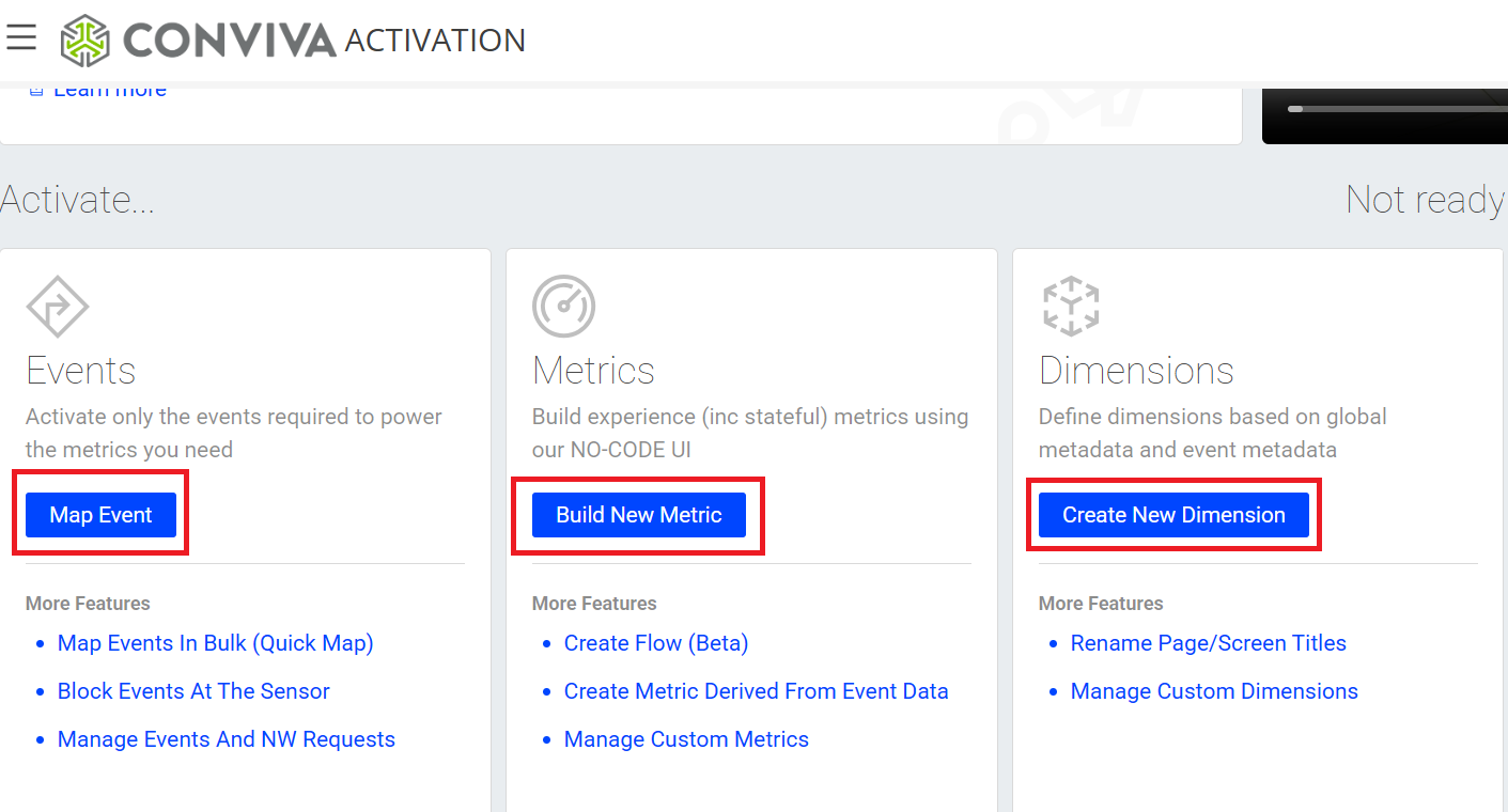 With the activation tools, set up event mappings to build customized metrics and add new dimensions to efficiently transform application events into advanced data insights. For example, map new live video attempt events and create the Live Video Attempt to Play Time metric based on the live video attempt and live video play events to identify user engagement with video content and facilitate analysis of any underlying factors contributing to delays in playback. For more details, see Semantic Mapper and Metric Builder. |