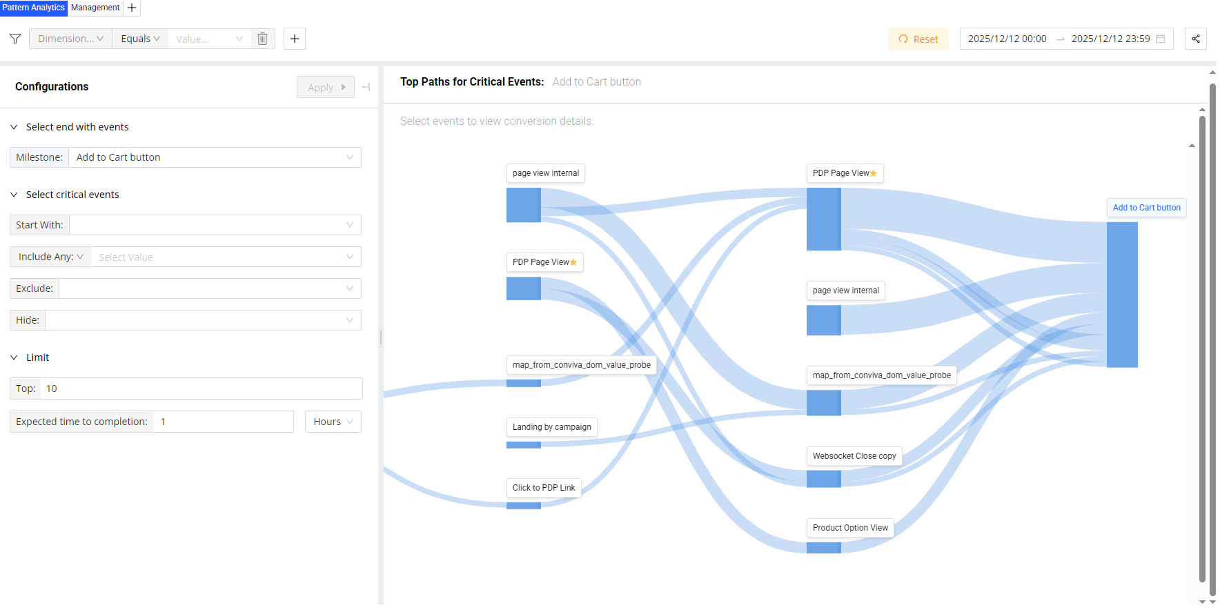 Use pattern analysis to explore user behavior patterns and critical blocks in task completions: For more details, see Patterns. |