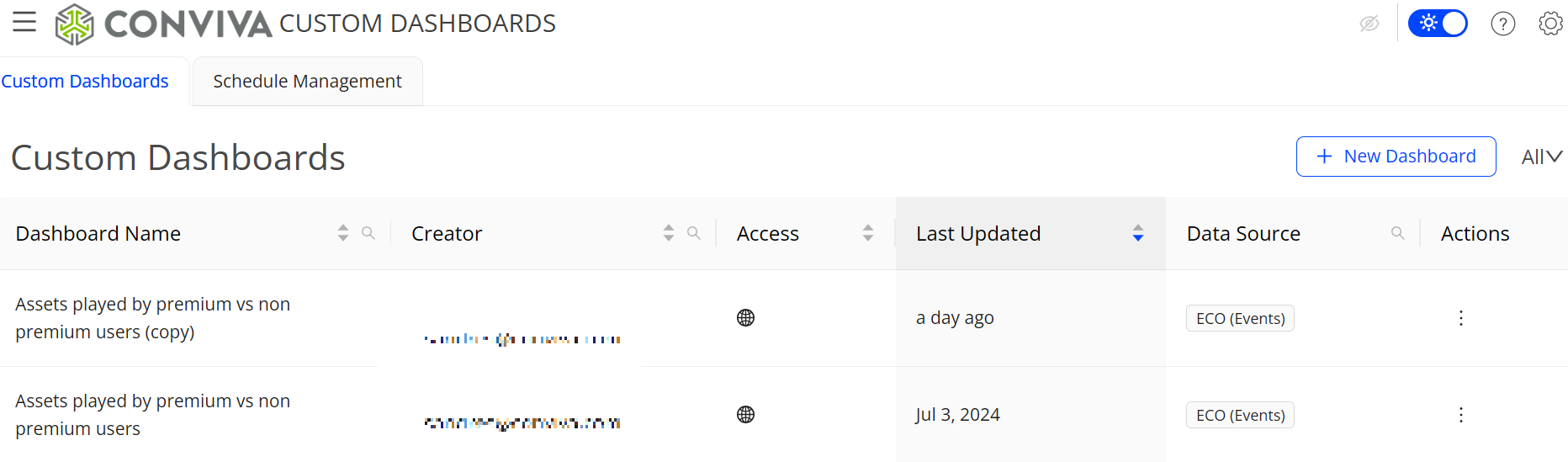 Create Custom Dashboard Access Pulse: Custom Dashboards |