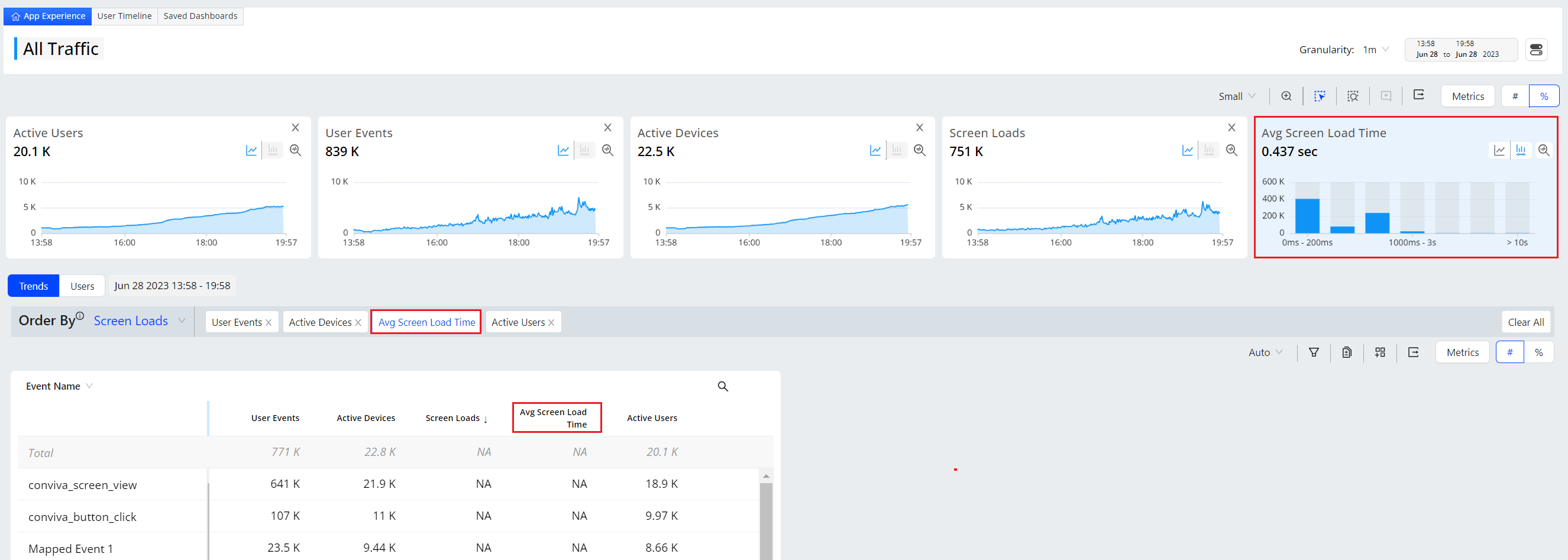 Note: Enabling the # mode displays the metric in number format, representing the total number of minutes with screen load duration over the threshold. |