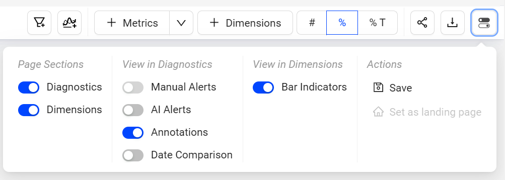 Click on the diagnostics metric widget to see the Annotations pop-up.