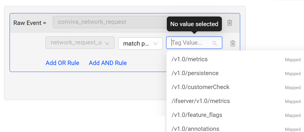 (Optional) Click Add OR Rule to add a OR rule and select the Tag Key, Condition, and Tag value from the respective drop-downs.