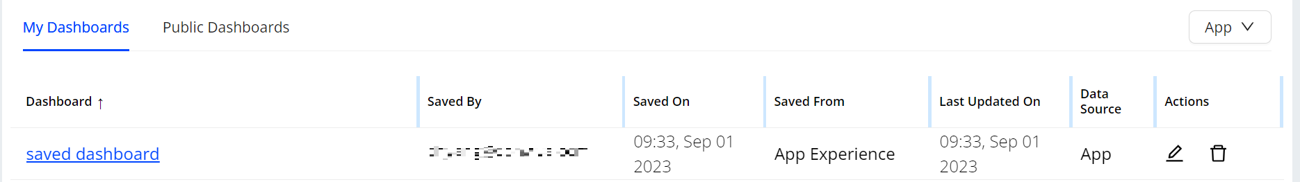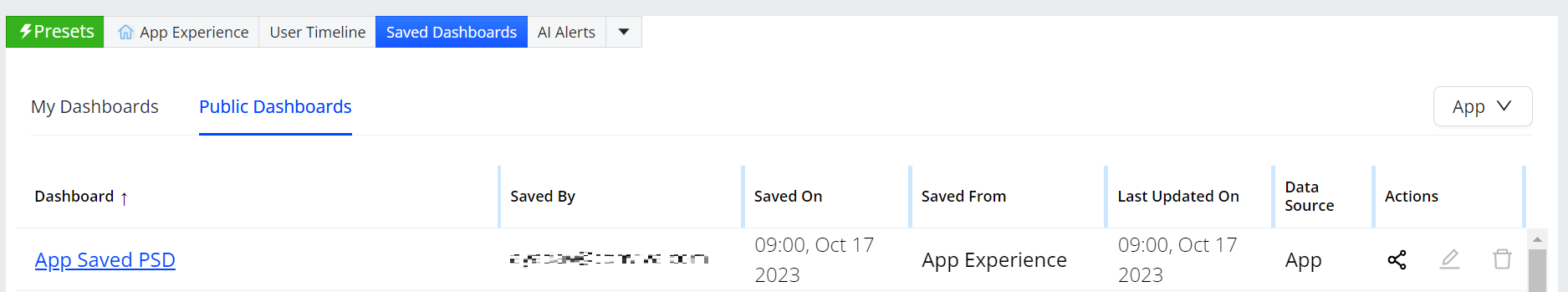 DPI allows you to save dashboards to preserve the current settings and data for easily access at a later time. The Saved Dashboards option displays the saved and custom dashboards.