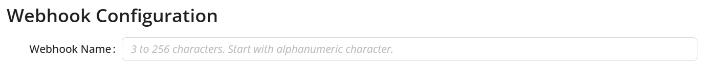 The name must be 3 to 256 characters and begin with an alphanumeric character. The webhook name is displayed in the notification email when a failure occurs, so use names that can help identify the related alert.