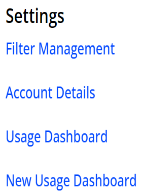| Account Details | The Account Details lists the features accessible to your account, including information on filter usage. For more information, see Account Details. |