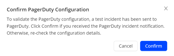 Click Confirm on the Confirm PagerDuty Configuration screen.