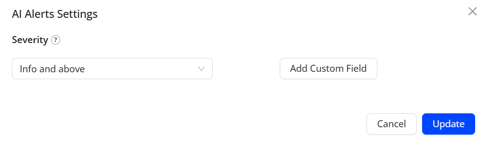 To select AI alerts, check the AI Alerts checkbox. To customize the alerts, click Customize AI Alerts. The AI Alerts Settings pop-up appears.
