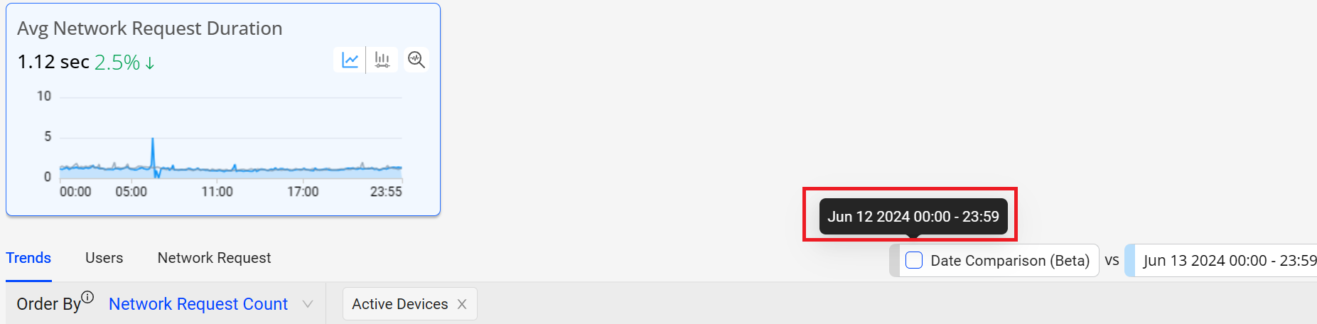 Select the time ranges that you want to compare from the Date Comparison.