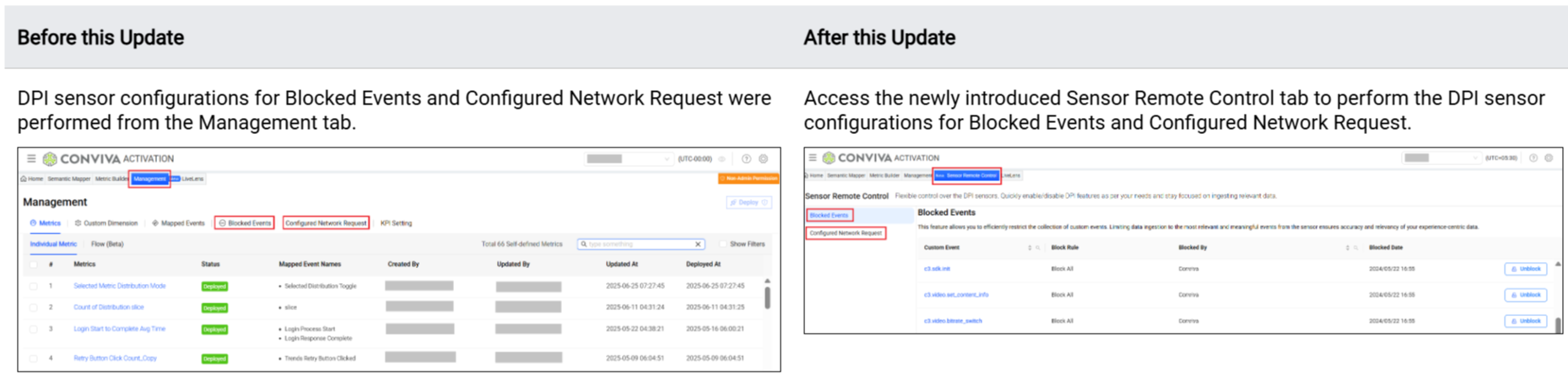Activation: New Sensor Remote Control Tab for Blocked Events and Configured Network Request