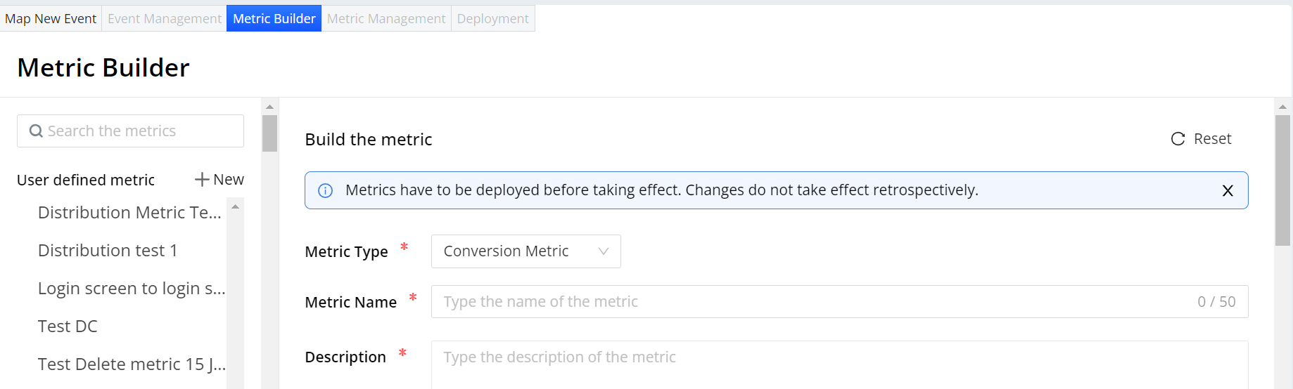 Adds support for creating user defined metrics directly in the App Experience dashboard. Instead of creating user defined metrics solely from the Data Modeling dashboard, this feature offers a convenient shortcut for metric creation in the App Experience dashboard. This feature streamlines the process, saving time and enhancing work efficiency.