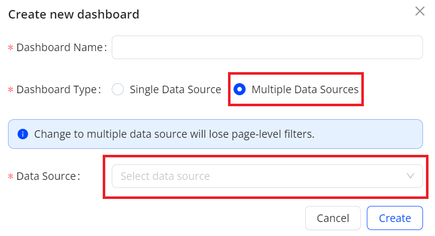 Dashboard Type check box to enable the selection of a single data source or multiple data sources.