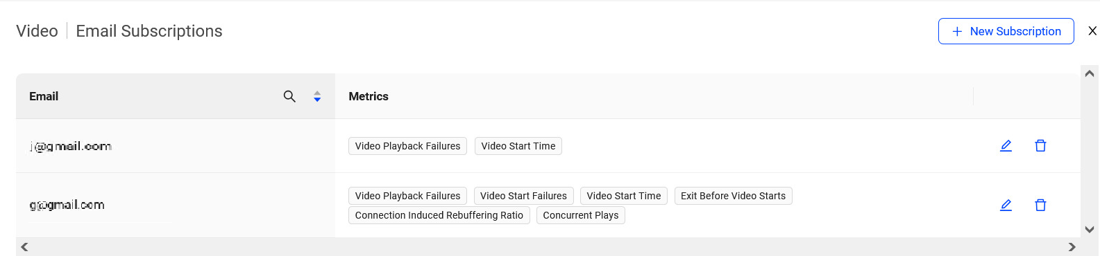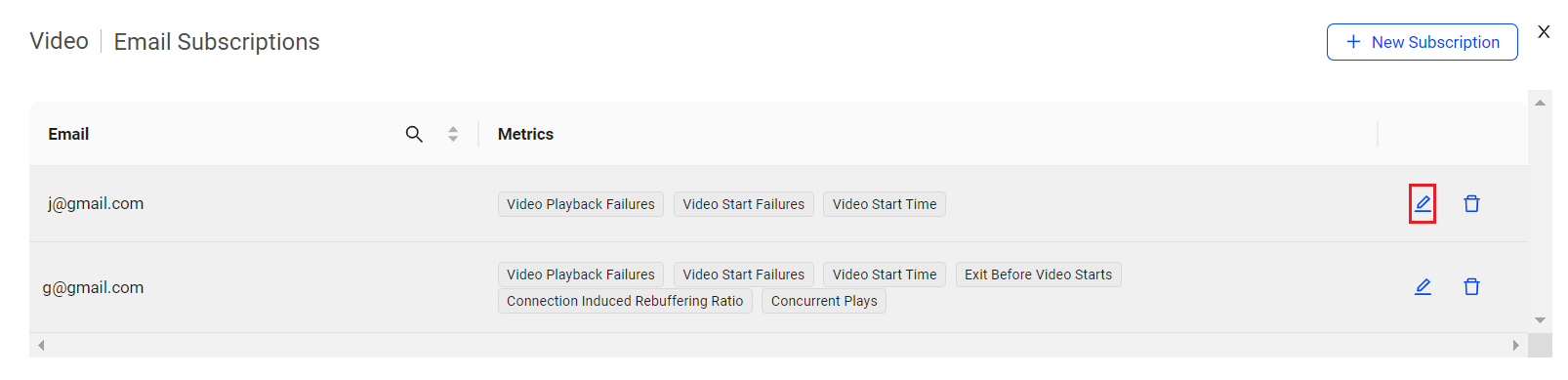 To edit AI alert email subscriptions for a user, click Edit icon.