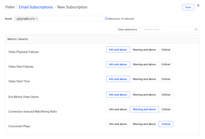 Note: Use the Clear Selections button (if required) to remove all selected severities for the metrics at once.