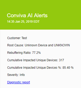 Once you receive the AI alert email, click the Diagnostic Report link to view the root cause details and the impact of the issue.