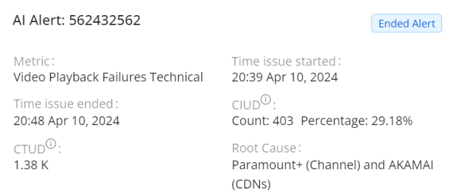 - Customer: For CDN Partners, displays the customer impacted by the alert.