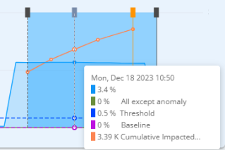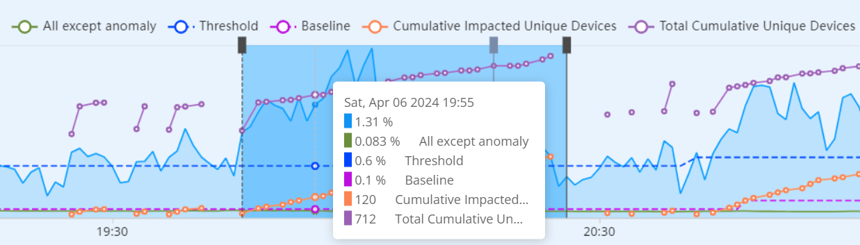 - Cumulative Impacted Unique Devices: The cumulative total of devices impacted by the issue at the time the AI alert fired.