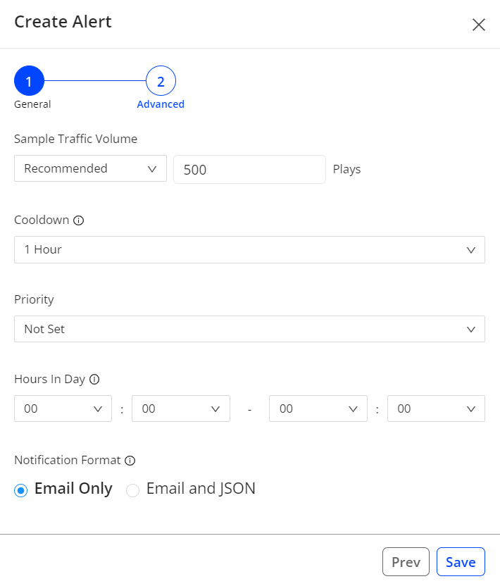 Notification Format: Set the notification as email or email with JSON data.