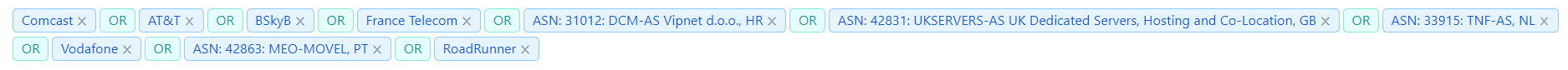 - Click dimension values in different dimension columns to build logical AND/OR filter rules (Comcast AND Roku AND New York)