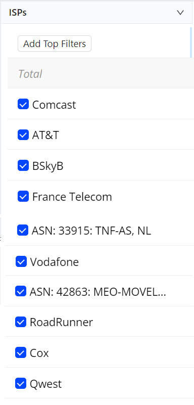 - Click a dimension name to create filters for the top 10 dimension values. The values appear in the filter panel.