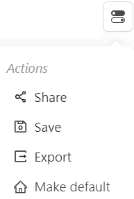 Click the toggle icon to Save and/or Share the dashboard for re-use and collaboration.