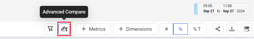 Use the Compare feature to build comparative analysis across multiple metric and dimensions.