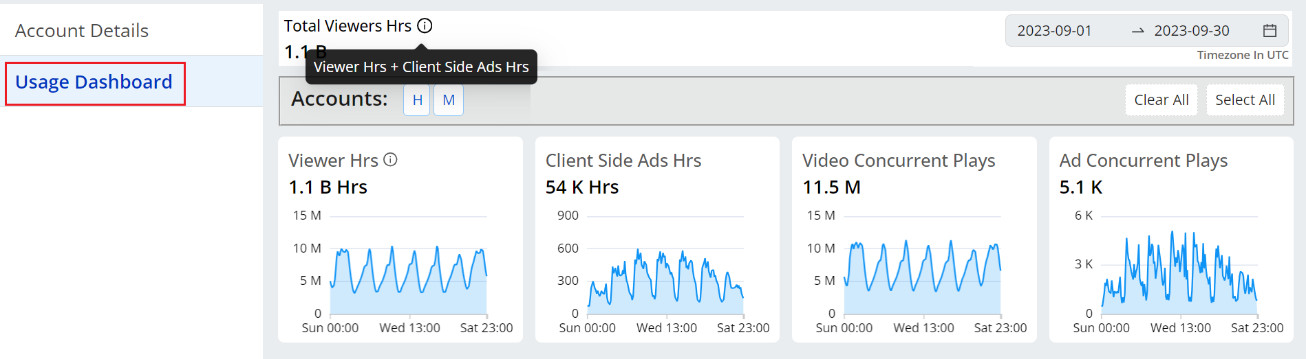 These are the default metrics that appear on the Usage dashboard. You can work with Conviva Customer Support to add or remove metrics as needed.