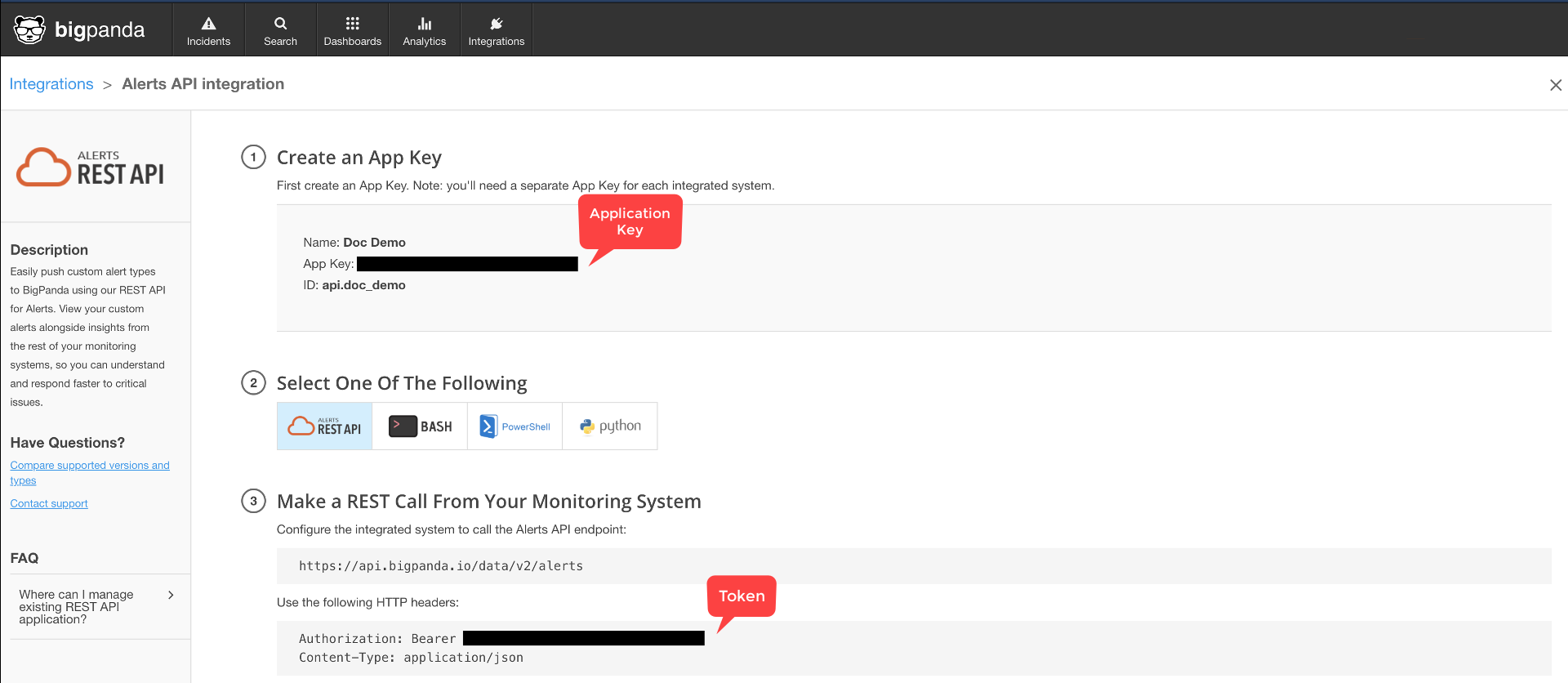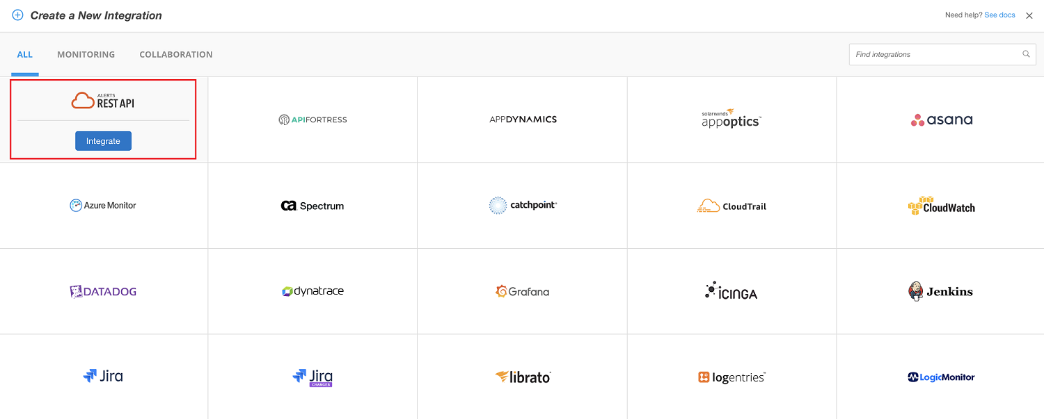 Under ALERTS REST API, click Integrate.
