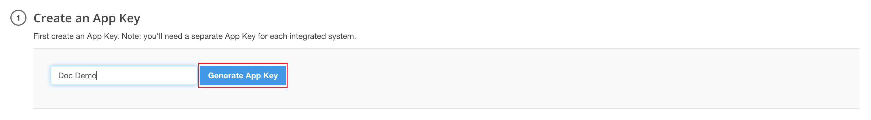 In the Create an App Key section, enter the integration name and click Generate App Key.