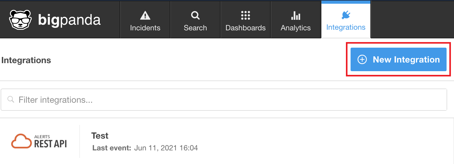 Log in to BigPanda and click Integrations.