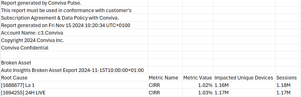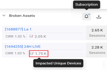 Note: Broken Assets Insights works only with VoD traffic. Also, performance issues may exceed multiple threshold settings for a given broken asset. Only the setting with the highest impact on the asset is displayed.