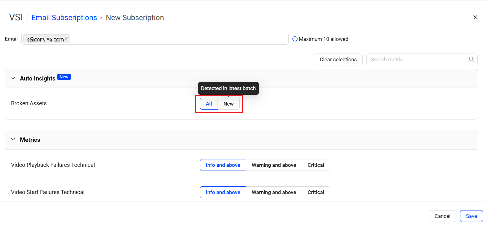 Email Subscription provides an option to subscribe to email notifications about broken assets. When the system detects a broken asset, it sends an email to the configured email IDs.