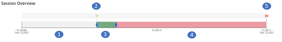 Only the icons for the current session states and events appear above the timeline. The complete legend is shown below.