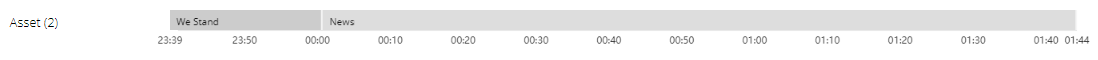 The Asset timeline displays the asset timeline and the number of assets viewed during the session along with the duration during which the assets played.